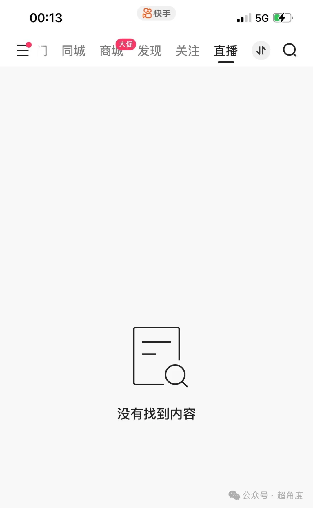0点10分左右,快手直播频道内容清空,疑似全部关停。
