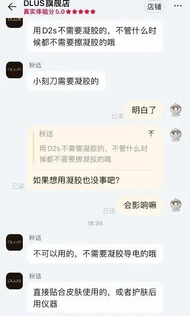 凤凰网科技在咨询DLUS客服后发现,其推荐不使用凝胶,但据行业人士分享,凝胶的核心作用是散热,不用凝胶不仅会导致皮肤烫伤,还会让仪器滑动不方便、能量传导不畅。“虽然DLUS也调低了射频功率,部分用户可能感觉不到热量和烫伤,但这种宣传会严重误导消费者,让消费者误以为所有射频仪都可以不用凝胶,进而在使用其他合规射频仪时也不涂凝胶,造成烫伤。”前述行业人士告诉凤凰网科技。