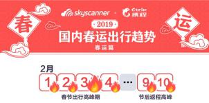 春节对于中国人来说有着极为特殊的感情,“回家团聚”一直是春节的传统习俗。而中国的春运大军也饱受全球媒体的关注,甚至有外媒将其誉为“全球最大规模年度人口迁徙”。 Skyscanner天巡联合携程发布的2019年春节出入境自由行大数据显示,2019年春运在2月1日(年廿七)至2月4日(年三十)期间是出行高峰期,其中,2月3日(年廿九)出行人数最为火爆;2月9日(初五)至2月10日(初六),出现春运返程迁徙高峰,许多人开始返回自己的所在地准备迎接新一年的工作。