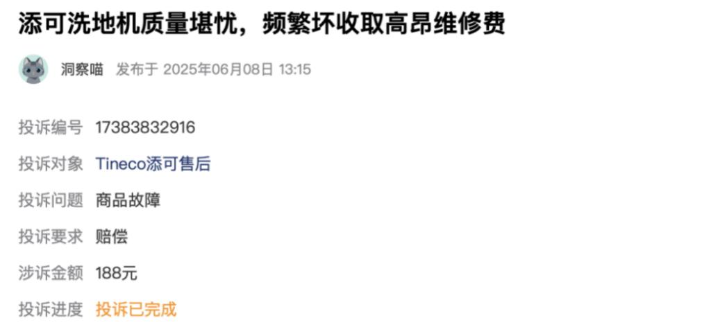 维修贵、故障频、售后难……添可洗地机被指“狮子大开口”观点