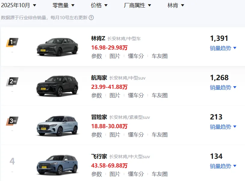 刚刚过去的10月份,长安林肯仅售出3085辆车,其中林肯Z和航海家苦售千余辆,冒险家和飞行家也没突破300的数字,可以说是几乎退出主流市场。