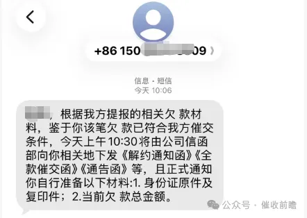 催收人员态度蛮横,甚至进行言语羞辱。后续陈先生还收到了平台发送的短信,声称将在指定时间下发《解约通知函》《全款催交函》《通告函》等文件,并要求其准备身份证原件及复印件、当前欠款总金额等材料。即便陈先生最终完成还款,仍收到了催收人员 “不要脸,不要皮的东西” 等恶意辱骂信息,其明确表示将报警后,骚扰行为才得以停止。