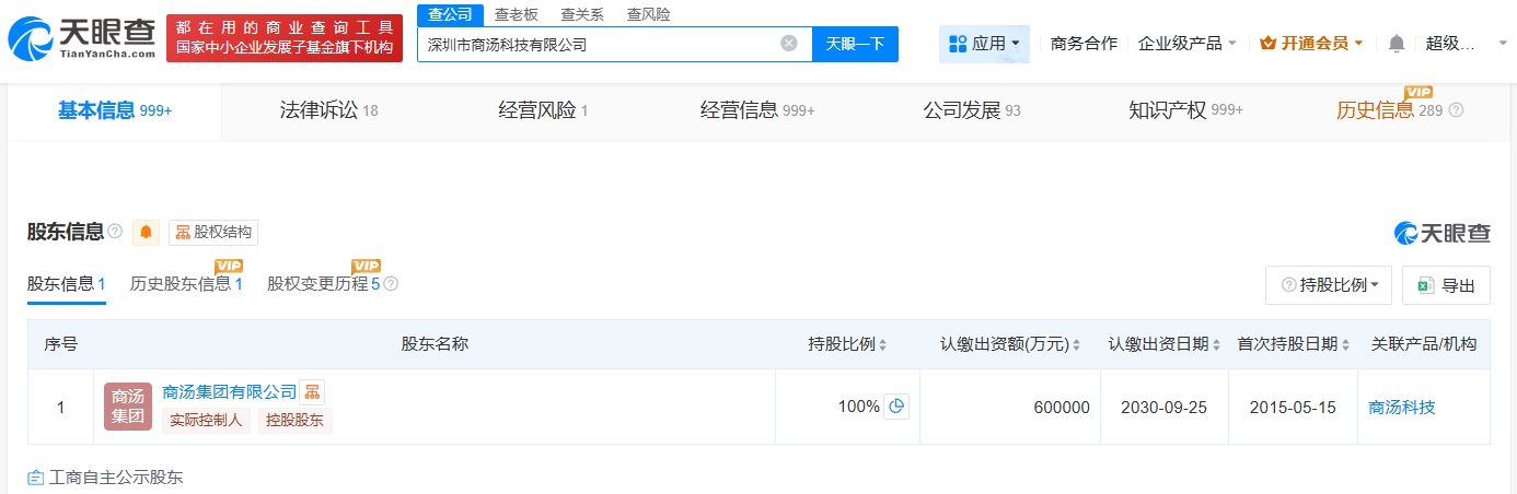 该公司成立于2015年5月,法定代表人为李廷波,经营范围包括计算机软件和计算式系统集成的技术研究、技术咨询、技术转让与服务等。股东信息显示,该公司由商汤集团有限公司全资持股。