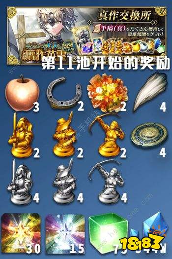 ◆「真作交换所」奖品奖池◆ 产出上三骑棋子和结晶、龙牙等材料,手稿(真)和手稿(伪)就是活动的无限池材料,手稿是本次活动的无限池材料。