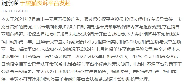 悟空保受罚四年后仍因“隐形扣费”被投诉,消费者投保容易退保难 |315金融曝光台观点