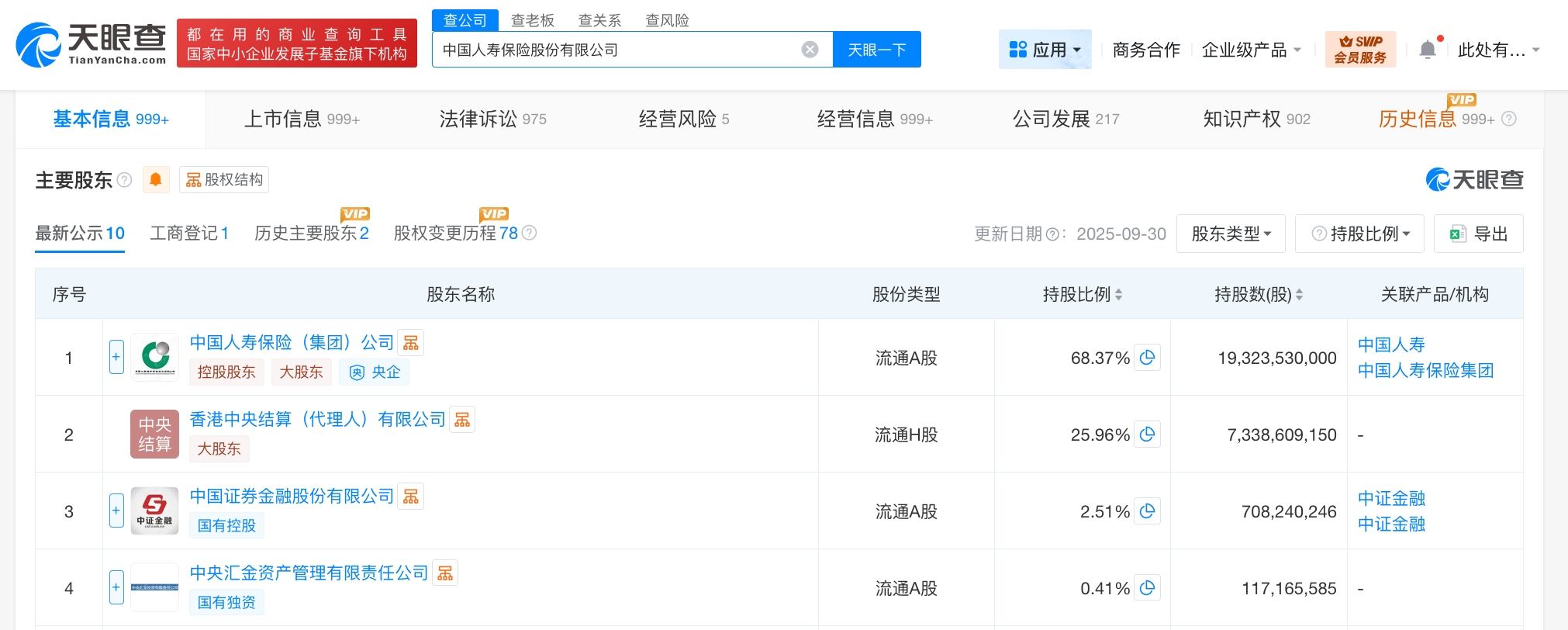 中国人寿保险股份有限公司成立于2003年6月,注册资本约282.6亿人民币,经营范围含人寿保险、健康保险、意外伤害保险等各类人身保险业务,国家法律、法规允许或国务院批准的资金运用业务等。股东信息显示,该公司由中国人寿保险(集团)公司、香港中央结算(代理人)有限公司、中国证券金融股份有限公司等共同持股。