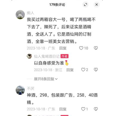 “一分钱一分货,想花150块钱PK 600块的体验,根本不可能, 连三线酒厂的嫡系产品都打不过”, 一位粉丝数27.3万的白酒评测主播对比品鉴后犀利点评。