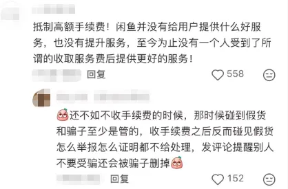 然而,也有网友质疑闲鱼平台未提前30日通过弹窗、站内信或短信等方式通知用户涨手续费,许多人临近生效日才得知此事。淘宝、pdd等一手电商平台基础服务费仅为0.6%,而闲鱼作为二手平台收费却高出近两倍,被指“吃相难看”。