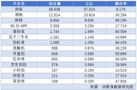 闲鱼投诉占比57%,