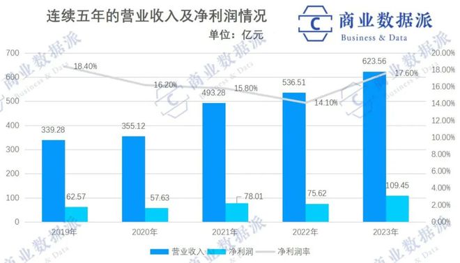3月26日,安踏发布了2023年财报。数据显示,2023年,安踏集团收入为623.56亿元,同比增长16.2%;净利润为109.45亿元,同比增长44.9%。从营收规模来看,尽管还未达到市场垄断地位,但体量已经相当于1.2个耐克中国、2.3个李宁、2.6个阿迪中国,成为了行业龙头。