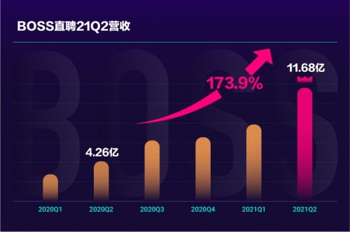 【TechWeb】8月27日消息,BOSS直聘对外发布了未经审计的2021年二季度财报,同时这也是BOSS直聘上市后发布的首份财报。数据显示,2021年二季度,BOSS直聘实现营收11.68亿元,同比增长173.9%,超过市场预期;报告期内,BOSS直聘净亏损14.14亿元,主要源于股权激励的支出。经调整扣除股权激励费用(SBC)后,BOSS直聘实现微利,非通用会计准则下净利润2.46亿元。
