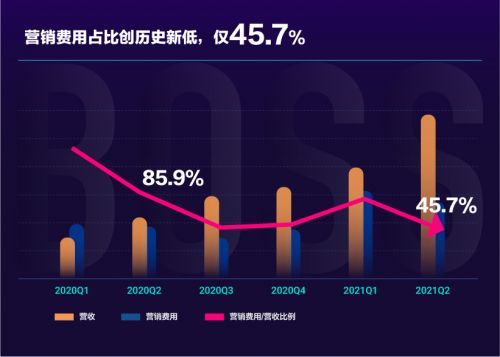 二季度BOSS直聘平均月活跃用户数达3040万,同比增长44.8%。同时,公司营销效率显著提升。财报显示,二季度销售和营销费用为人民币5.34亿元,销售和营销费用占营收比45.7%,较去年同期的85.9%显著下降。