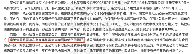 承办法官庭后在淘宝平台、京东商城等查询iPhone16128G手机的销售价格,其中,淘宝平台AppleStore官方旗舰店同款手机售价不超过5399元,京东自营旗舰店的同款手机售价未超过5,000元,且可以使用补贴优惠以及免息分期支付,售价均低于8185元。基于此,庭审中,承办法官当庭询问金玉满堂公司,“案涉合同是否存在名为手机买卖实为网络借贷的情形”。金玉满堂否认,称与陶某之间确系手机买卖合同关系,不存在其他法律关系。