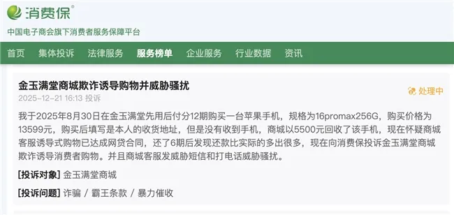 在互联网投诉平台上,近期消费者对金玉满堂商城的投诉激增。从投诉信息看,有多名消费者表示自己是被“诱导”在金玉满堂商城下单。