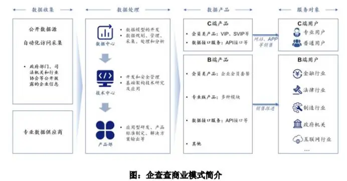 企查查之所以拥有高毛利,是因为它采用了极致的轻资产运营模式。其主要数据来源为政府、司法机关所发布的公开信息,前期通过算法、算力完成清洗加工之后,以高溢价的方式销售给C端个人用户以及B端企业客户,成本几乎可以忽略不计,使得毛利率远超传统行业。