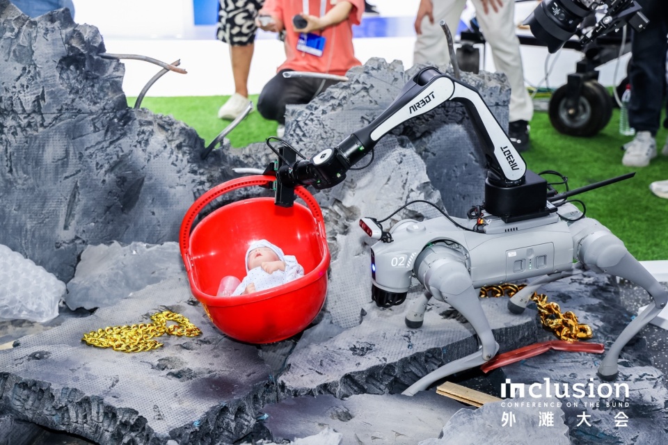 机器人翻越崎岖高地,操作电箱闸刀,安插火药雷管,甚至还在废墟中成功救出“婴儿”。——这不是科幻电影,而是9月10日外滩大会AI科创赛“机器人职业技能表演赛”上的真实画面。本次赛事由蚂蚁数科承办,4家具身智能厂商的机器人轮番登场,在模拟真实工业与救援场景的高难度任务中展开角逐,完整流畅的操作与温情场景赢得观众掌声。