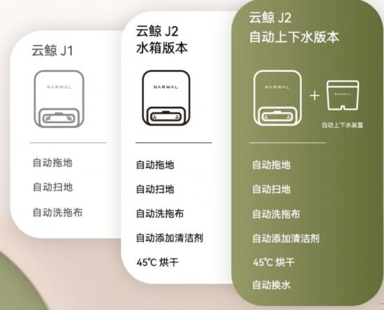 扫地机器人也是如此,像云鲸J2新增了自动上下水功能,就类似于洗衣机从早期的只拥有洗衣能力进化到全自动洗衣机。产品安装额外的自动上下水装置,连接家中的入水和排水口,基站可以根据需要自动进水和排水。