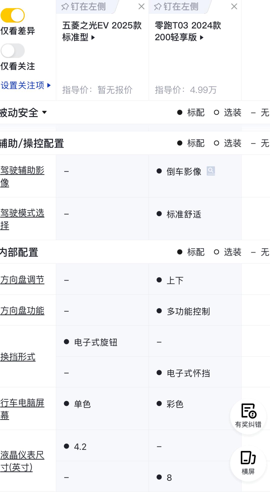 从其它配置来看,因为二者的定位不同,五菱之光EV除了高配的外放电功能和后排空间比较大,智能互联、灯光等还不如宏光MINI EV。当然,这是与2024款宏光MINI EV相比,目前它终端市场价格4.48万元。五菱之光EV4.78万元的预算价比2024款宏光MINI EV市场价贵了3000元。