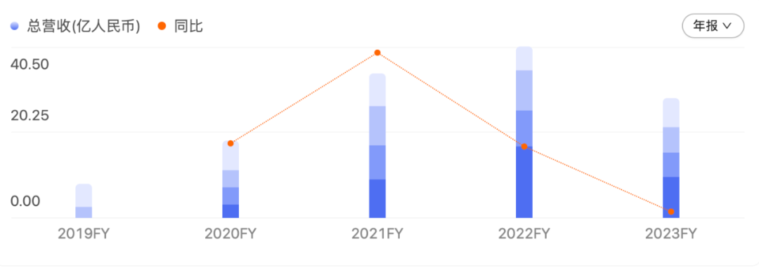 酒鬼酒曾是被公认的白酒“黑马”,也是国内最早布局高端市场的白酒品牌。2020年~2022年,酒鬼酒的营收规模一路高歌猛进,短短三年从18.26亿元飙升至40.5亿元。到了2023年,这个曾经在一年多时间内股价暴涨十倍,业绩飙升的酒鬼酒彻底失速了。
