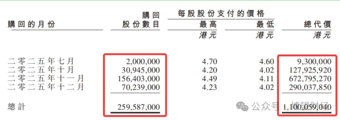 同时,飞鹤2025年全年实行多次股份回购,共回购约2.596亿股股份,累计回购金额约11亿港元。