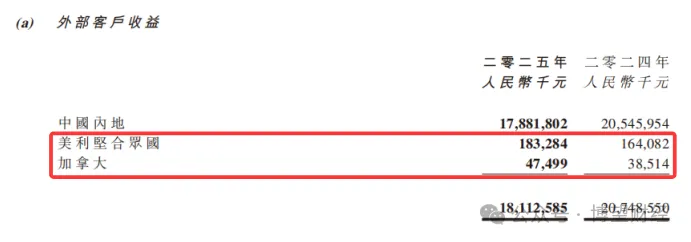 财报显示,2025年飞鹤的海外收益主要来自美国和加拿大,二者收益之和为2.3亿元,同比增长13.9%,在总营收中的占比仅1.3%左右。