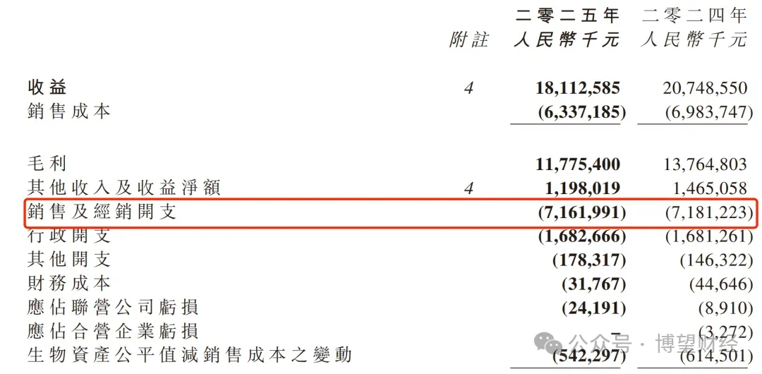 与此同时,飞鹤的营销投入虽力度不减,营销效率却在下降。2025年,销售及经销开支为71.62亿元,同比仅下降0.3%,几乎与2024年持平,但占总营收比例从2024年的34.6%上升至39.5%,增加4.9个百分点。