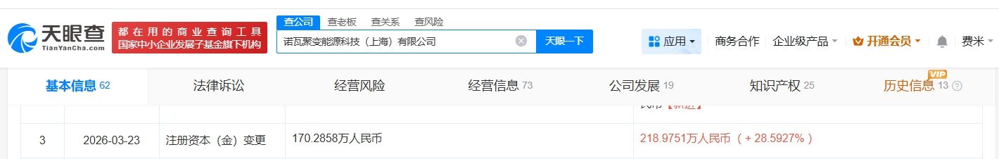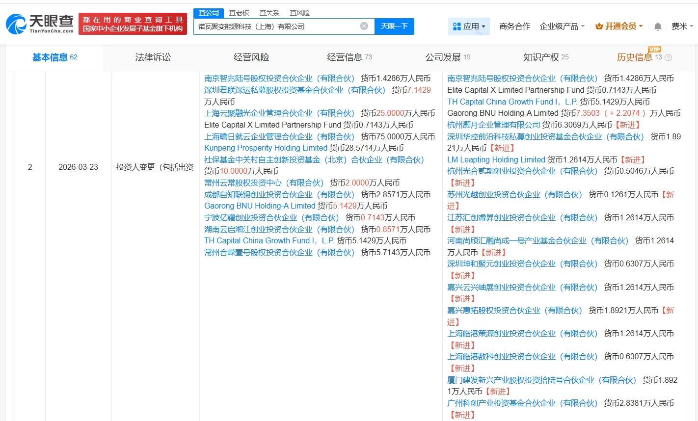 天眼查App显示,近日,诺瓦聚变能源科技(上海)有限公司发生工商变更,新增阿里巴巴旗下杭州灏月企业管理有限公司、上汽旗下河南尚颀汇融尚成一号产业基金合伙企业(有限合伙)等为股东,同时注册资本由约170.3万人民币增至约219万人民币。