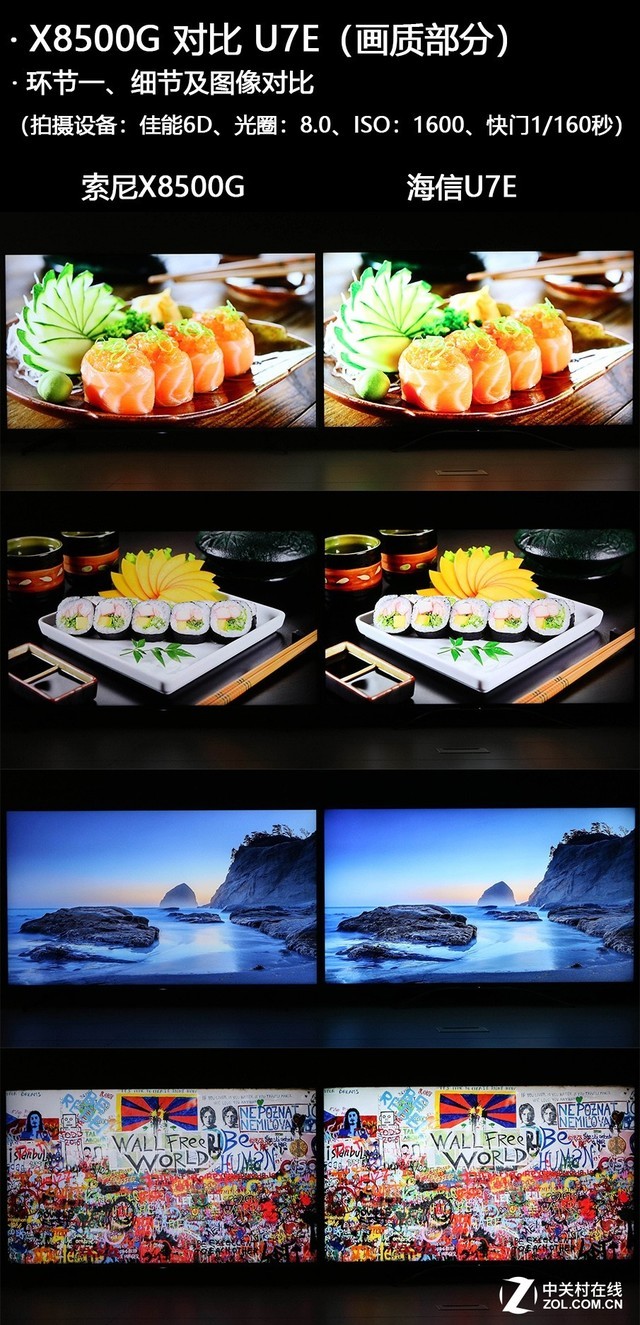 什么叫做肉眼可见?就是下图的呈现(左侧为索尼X8500G实测效果,右侧为海信U7E实测效果):