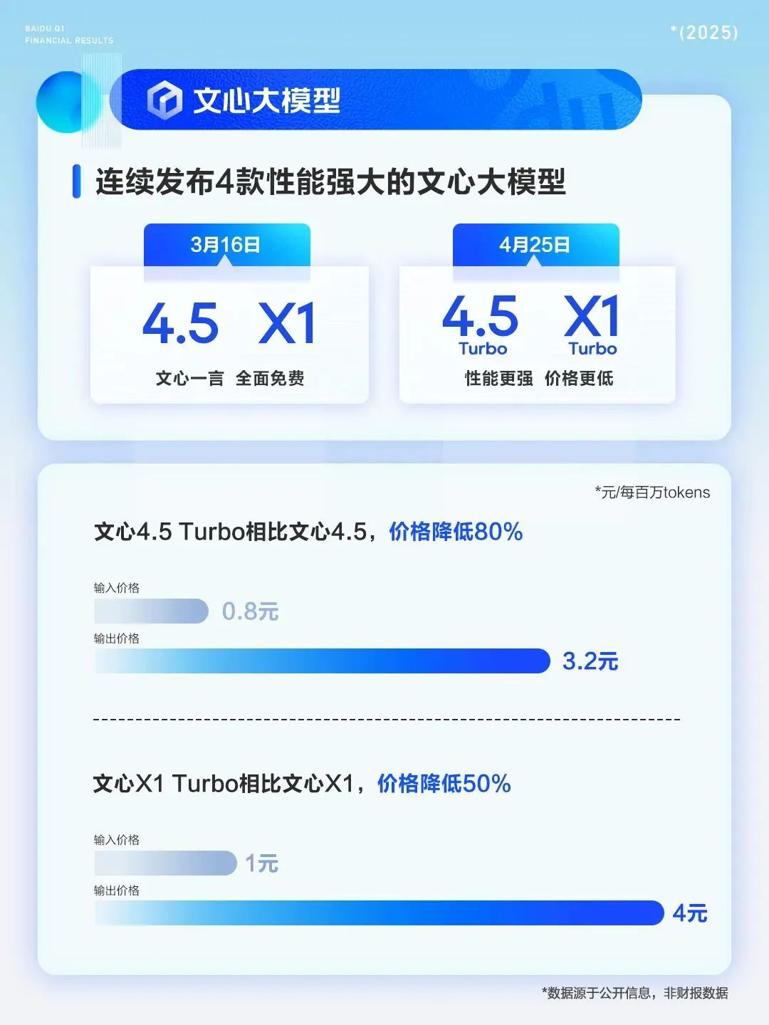 拿文心大模型4.5 Turbo来说,每百万token的输入价格只有8毛钱,输出价格也仅有3.2元,仅为DeepSeek-V3的40%。相当于买一瓶可乐的钱。