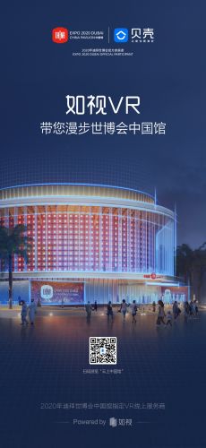值得一提的是,此次迪拜世博会中国馆组委会创新参展形式,联动贝壳找房如视团队,首次运用虚拟现实(VR)技术,推出“云上中国馆“。中国及全球观众通过中国馆官网、官方微信公众号等平台,点击链接或扫描二维码,就可直达2020年迪拜世博会“云上中国馆”进行沉浸式游览。