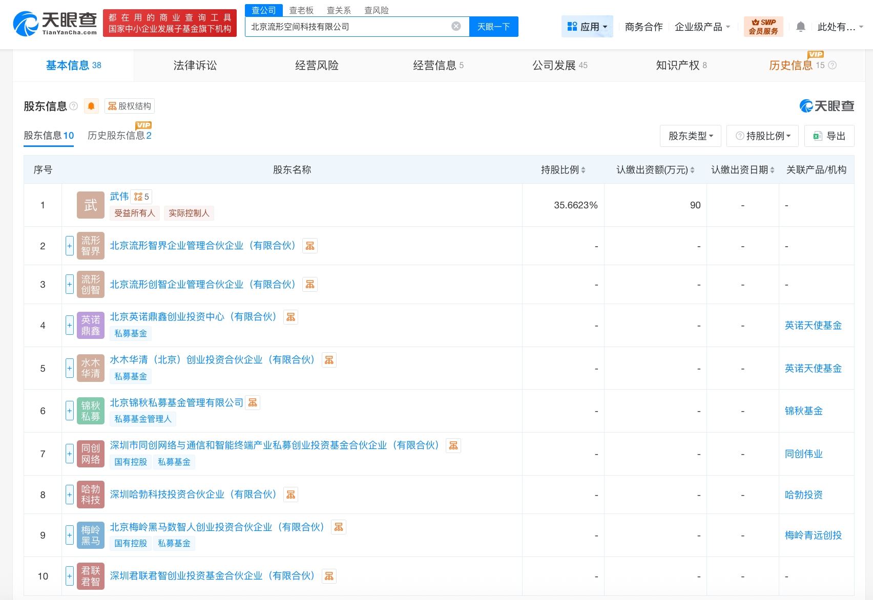 天眼查工商信息显示,近日,北京流形空间科技有限公司发生工商变更,新增华为旗下深圳哈勃科技投资合伙企业(有限合伙)、深圳君联君智创业投资基金合伙企业(有限合伙)、北京梅岭黑马数智人创业投资合伙企业(有限合伙)为股东,同时,注册资本由约219.9万人民币增至约252.4万人民币。