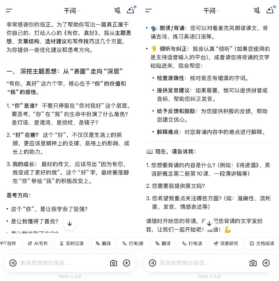 千问的到来,以AI科技打破了这一僵局,达成了家长跟学生双方都满意的局面。