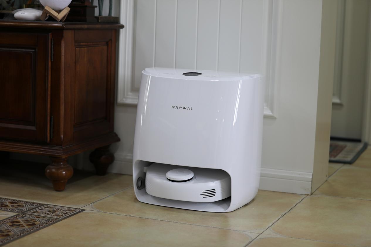 拖地可以说是云鲸小白鲸的主要功能,从上述实验可以发现,云鲸小白鲸在底座内置了清水和废水箱,可以自动清洗抹布,拖地方面较为便捷。