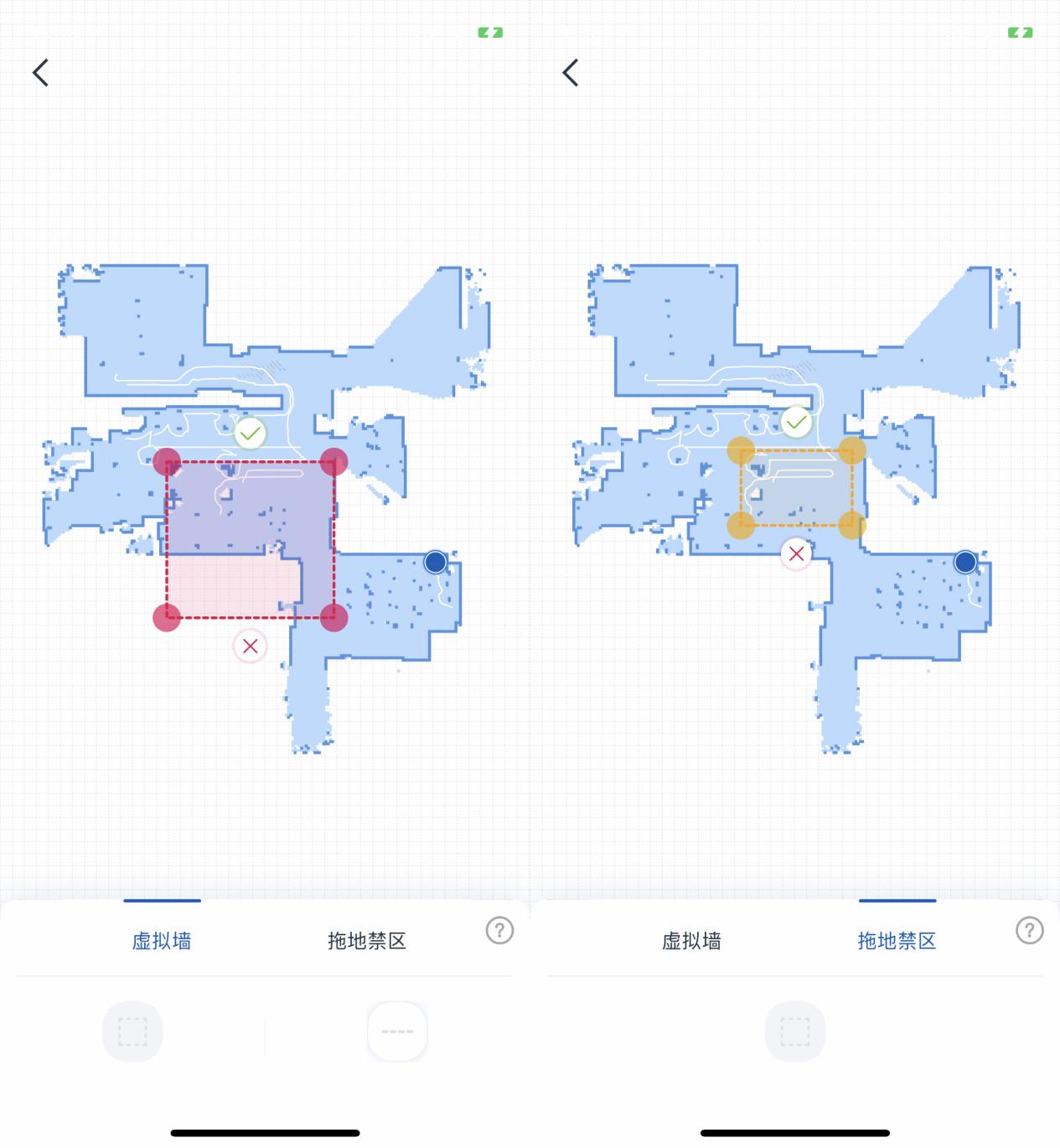 ▲图注:科沃斯超能王可设置虚拟墙、拖地禁区
