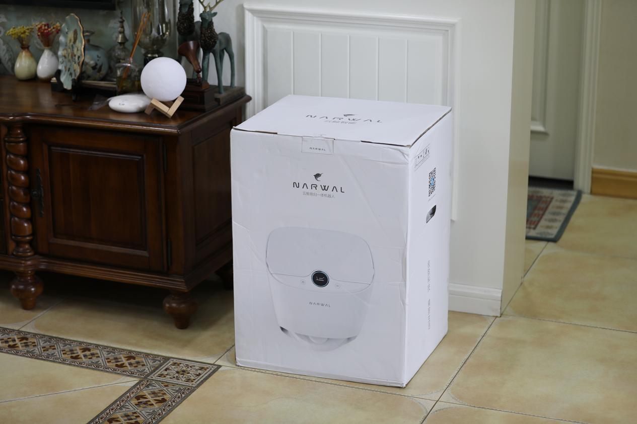 ▲图注:云鲸智能扫拖一体机器人外观包装