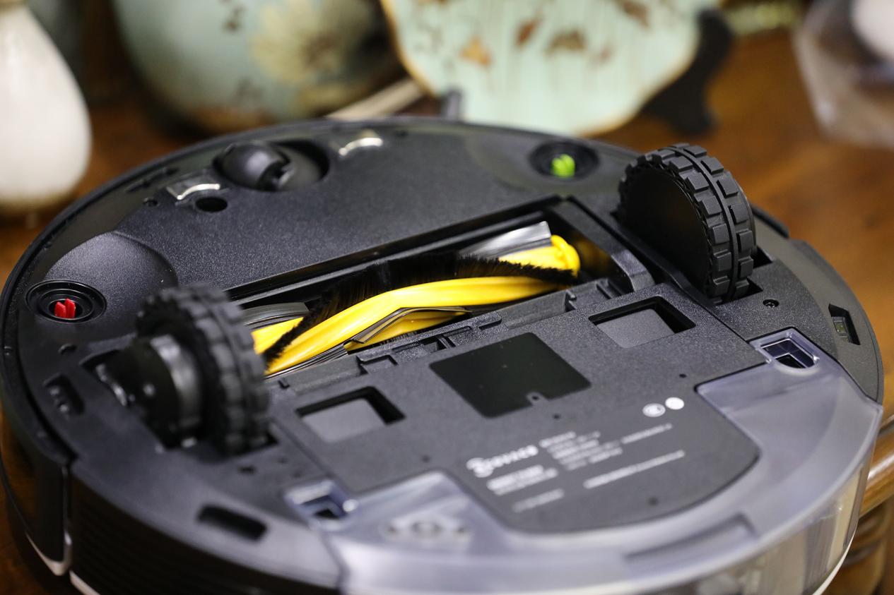机身的底部是机器的主要清扫工作区,如果我们观察两者的底盘,就可以发现出现这两种现象的原因。