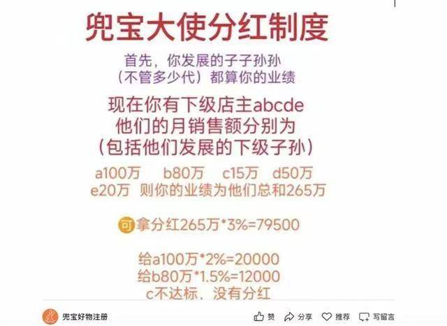 名为“兜宝好物注册”的微信公众号曾发文直言,“只要以你为起点,下面子子孙孙的业绩都是你的。”