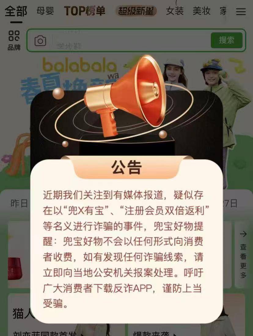 更为雪上加霜的是,兜宝好物还曾被卷入诈骗风波。据《华夏时报》文章,王先生看到微信朋友圈有人分享带货兼职的信息,便加入了一个名为“JOJO→兜里有宝←品牌店”的微信群。进群后,一个昵称叫“引领ChatGPT精神”的人添加了王先生,并私聊称“梦饷兜宝”现在有一个返利计划,一次性交两千块钱,可以升级会员,只要有用户通过王先生提供的链接买东西,就可以收到平台返利。其同时承诺,缴纳费用后会双倍返现,并获得终身一对一指导。然而,王先生转账后便被拉黑。