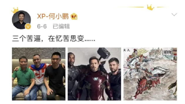 6个月前,何小鹏在社交媒体发布一张三人合影,并配了上述九个大字。