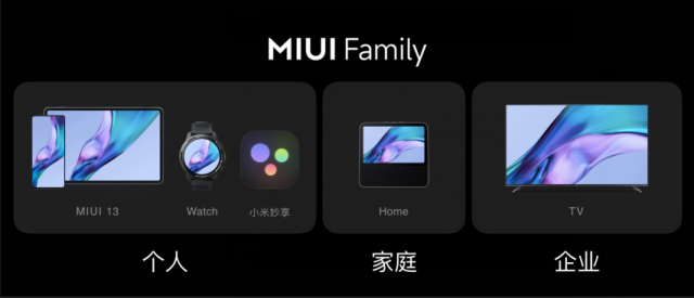 此外,MIUI团队带来全新的“MIUI Family”:MIUI Watch、MIUI Home和MIUI TV企业版。MIUI正式从连接个人设备延申到连接家庭和企业设备。其中,MIUI Home是居家生活的智能小助手,让有屏音箱成为家庭的智能中控中心和家人的情感连接中心。此外,MIUI TV企业版带来便捷的企业展示操作和管理,让电视设备成为企业的得力工具。