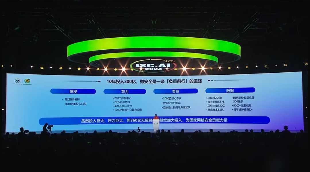 【TechWeb】7月31日消息,在ISC.AI 2024第十二届互联网安全大会上,360创始人周鸿祎发表演讲,他提到,360过去10年累计投入了将近300亿人民币,研发投入在网络安全行业里超过第二名到第十名的总和。