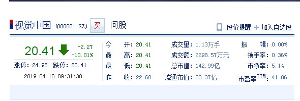 视觉中国连续第三日跌停,报价20.41元,跌停封单超55万手,目前市值约143亿元。