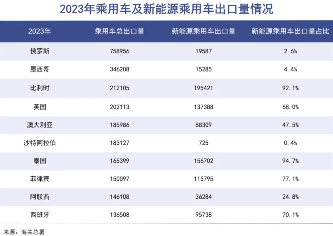 从全球终端市场表现来看,过去一年,我国汽车出口量约达491万辆,成为全球最大汽车出口国。但是从具体每个国家的出口销量来看,除了由于地缘政治因素销量暴增的俄罗斯之外,中国汽车出口到单一国家的绝对销量不够高。