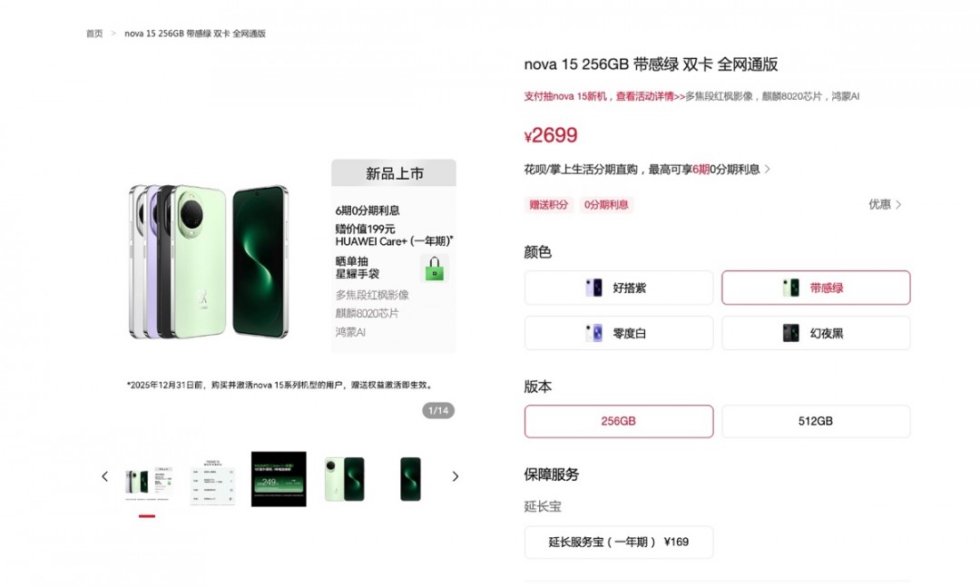 今天上午,华为nova15系列手机正式全渠道开售,包含标准版、Pro版及Ultra版三款机型,起售价2699元。