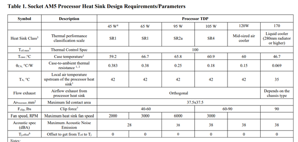 另外,AM5处理器的热设计功耗分为六个档次,从低到高分别是45W、65W、95W、105W、125W、170W。