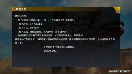 《绝地求生:全军出击》停机维护 恢复时间未知快报