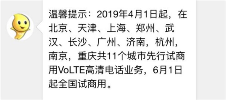 据IT之家网友爆料,中国联通官方已经公布了VoLTE高清电话业务全国试商用时间,4月1日起,将在北京、天津、上海、郑州、武汉、长沙、广州、济南、杭州、南京、重庆共11个城市先行试商用,6月1日起全国试商用。