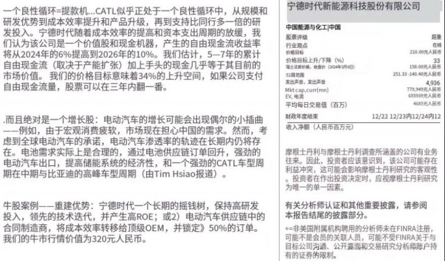 二级市场,宁德时代股价反弹凌厉,自1月底的低点反弹超40%,市值重新逼近1万亿关口。摩根士丹利更是将其评级上调至超配,并毫不吝啬溢美之词,称其为一颗“长期的摇钱树“。
