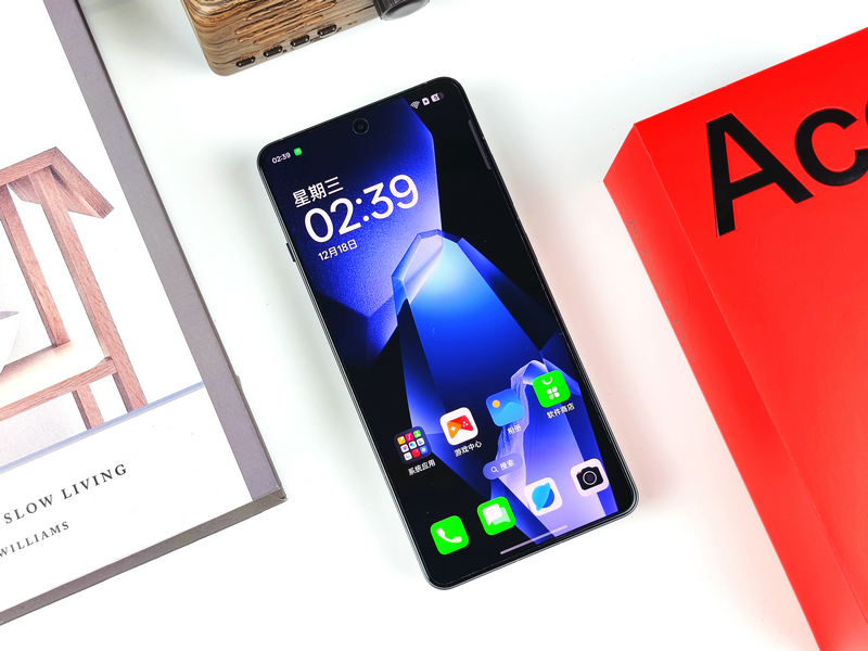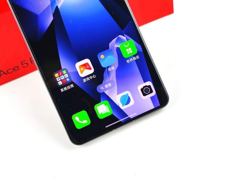机身正面,全新的一加Ace 5 Pro采用了用户呼声很高的全新直屏形态,可以有效减少游戏过程中的边缘误触,对游戏党来说非常友好;并且还采用超窄边框设计,最窄处只有1.36mm,视觉上接近四边等宽,亮屏后给人的视觉冲击力极强,放在顶级旗舰中也是不错的选择。