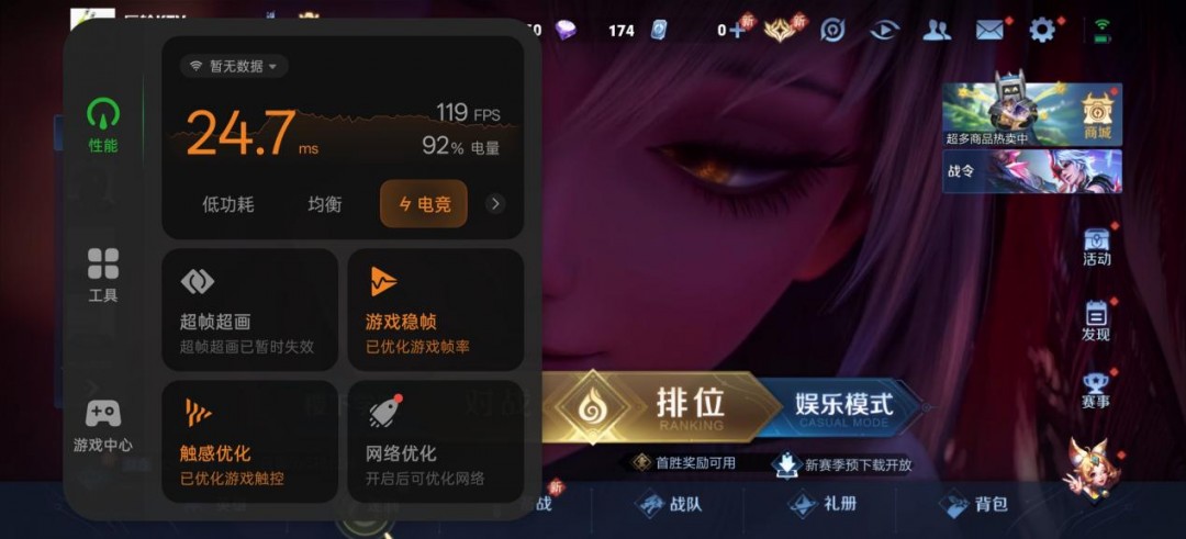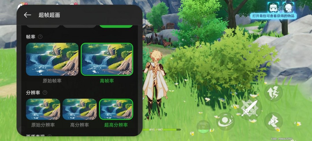 通过对比我们可以看到,在开启超帧超画功能后,游戏的画质有了明显的提升,特别是在画质优先模式下,睛细节、衣服边缘纹理细节等都有肉眼可见的清晰度提升,比原始画质高出好几个档次。